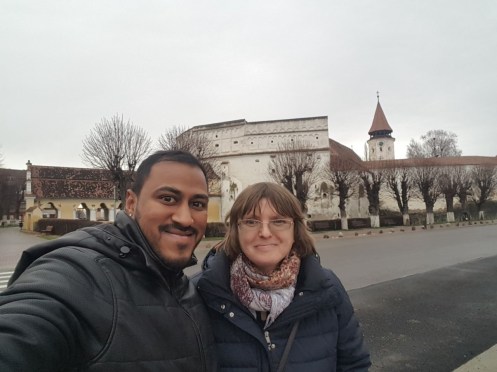 About » Selfie with Rajesh in front of Prejmer Citadel, Dec 2017