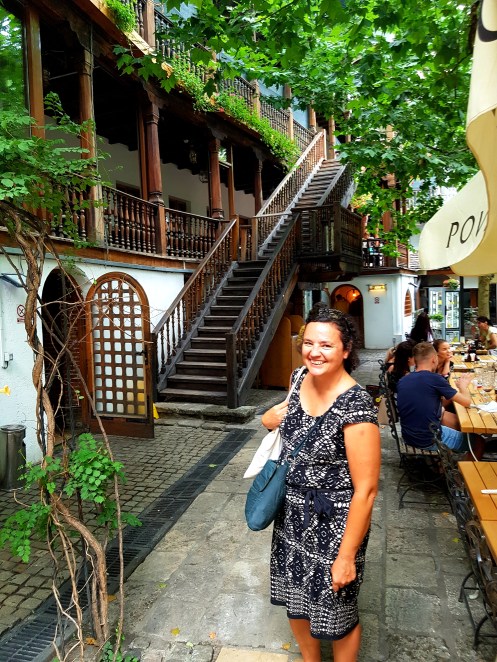 At Manuc’s Inn in Bucharest, during tour, July 2018