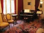 Enescu and his wife did not actually live in the main building of the palace, but in the small austere pavilion at the back of the garden, behind the palace. The three rooms displaying original furniture and personal objects recreate the familiar ambiance of the artist.