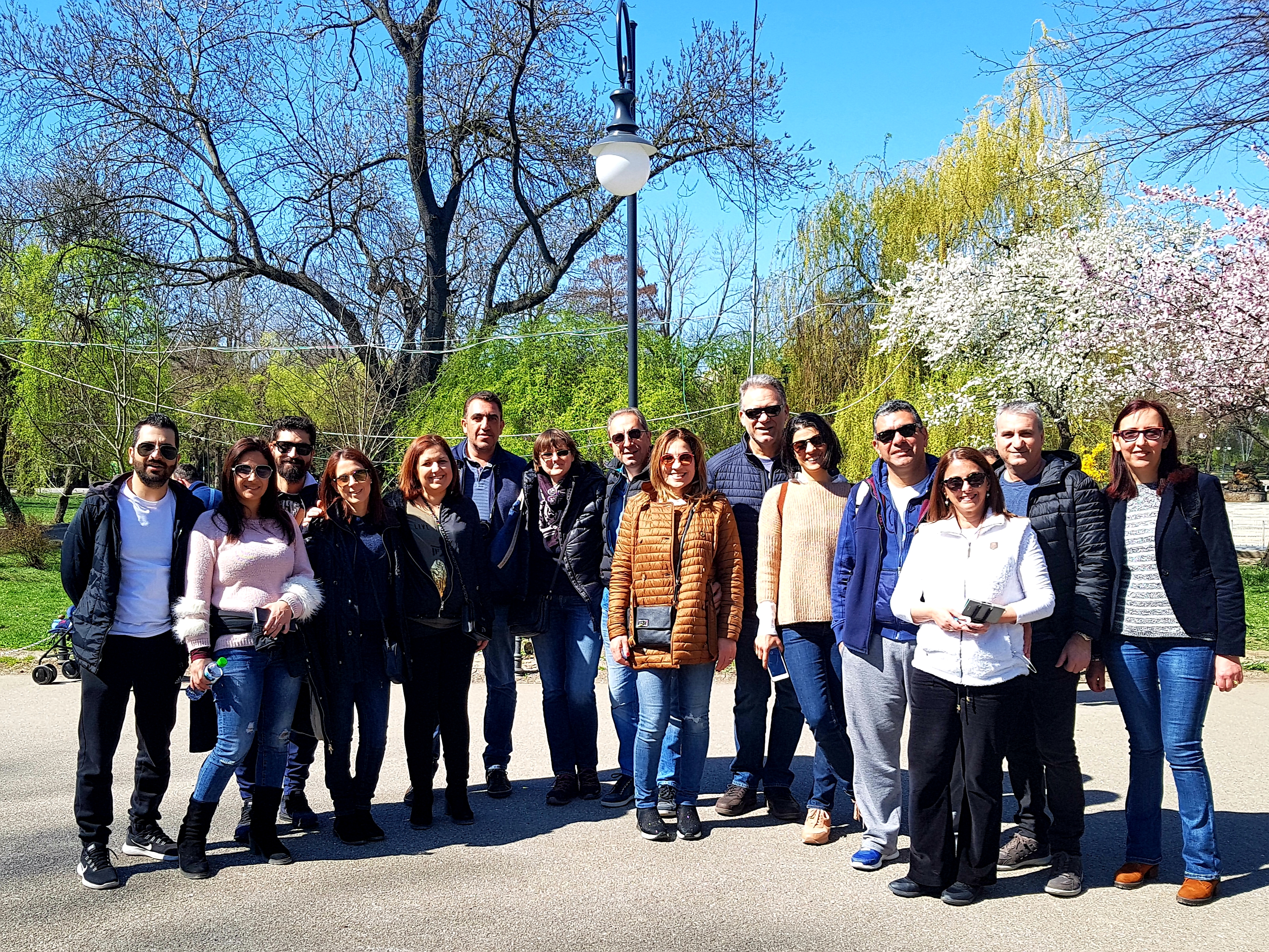 Guests from Cyprus in Cismigiu Garden during Bucharest tour, March 2019