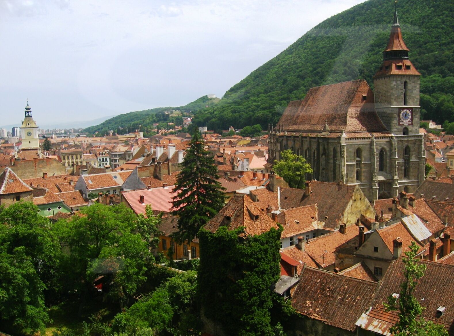 Overview to the historical center of Brasov, laying at the foothills of Tampa Mountain, with the impressive Gothic Cathedral known as the Black Church. The city of Brasov located in south-eastern Transylvania was one of the most important foundation of the German settlers and played throughout history a prominent role as a trade center, artisan’s center and focal point of culture in South Eastern Europe.