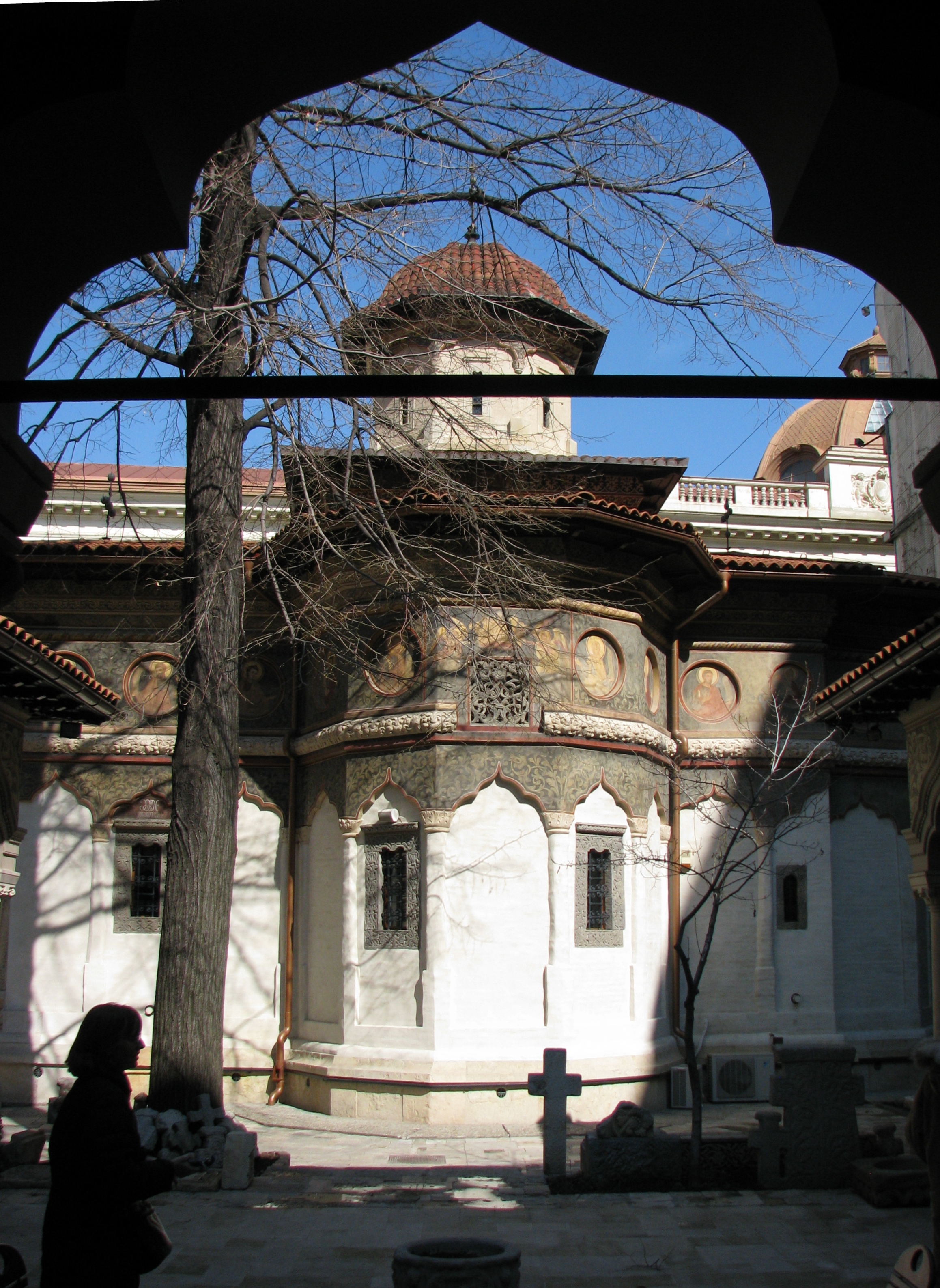 Stavropoleos Church (1724) » Stavropoleos Church seen through the cloister, historic downtown Bucharest