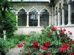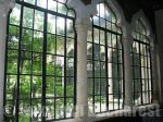 A most remarkable component of the edifice is the glazed arched gallery running around the courtyard. The glazed structure in fine metal frame and the accolade-shaped arches are references to the Bucharest’s 18th century architecture of Ottoman-Oriental influence. A spectacular painted, enameled ceramic frieze decorates the arches. The same enameled ceramic in yellow and green is found on the exterior façade, decorating the windows and the small medallions with school’s monogram.